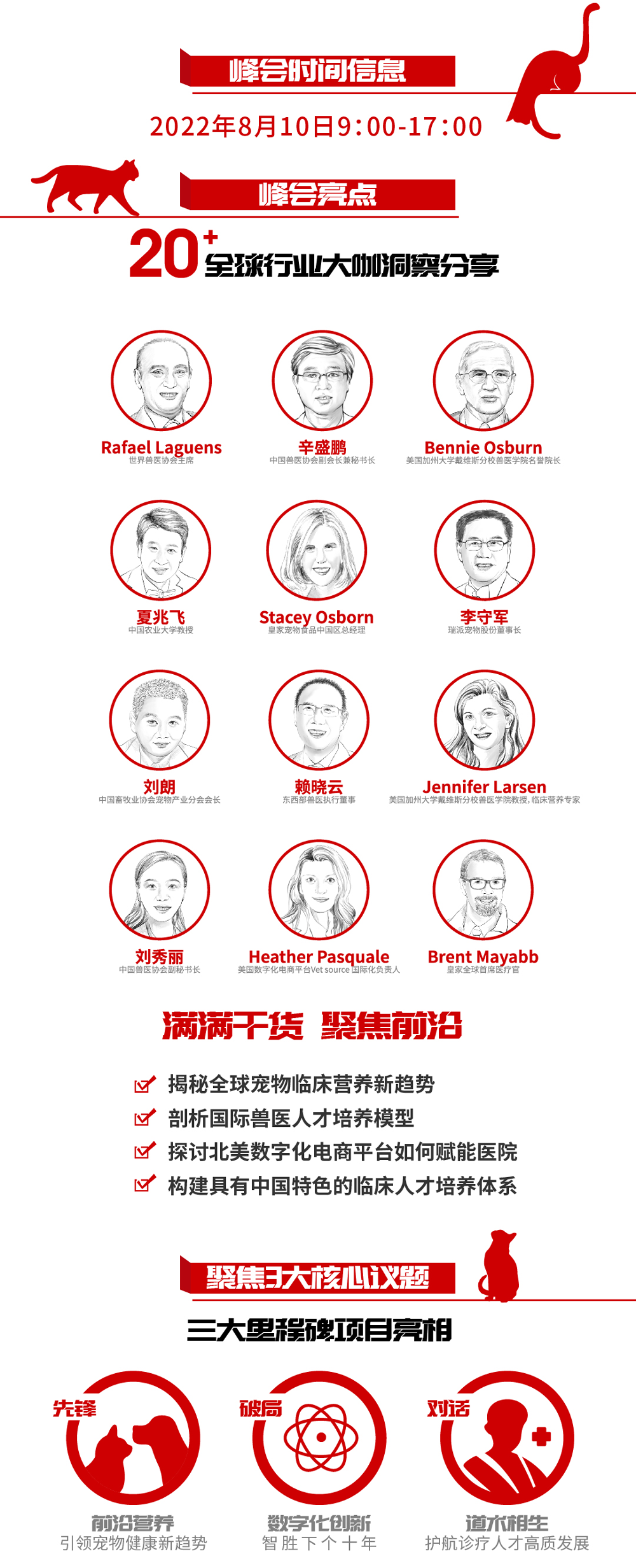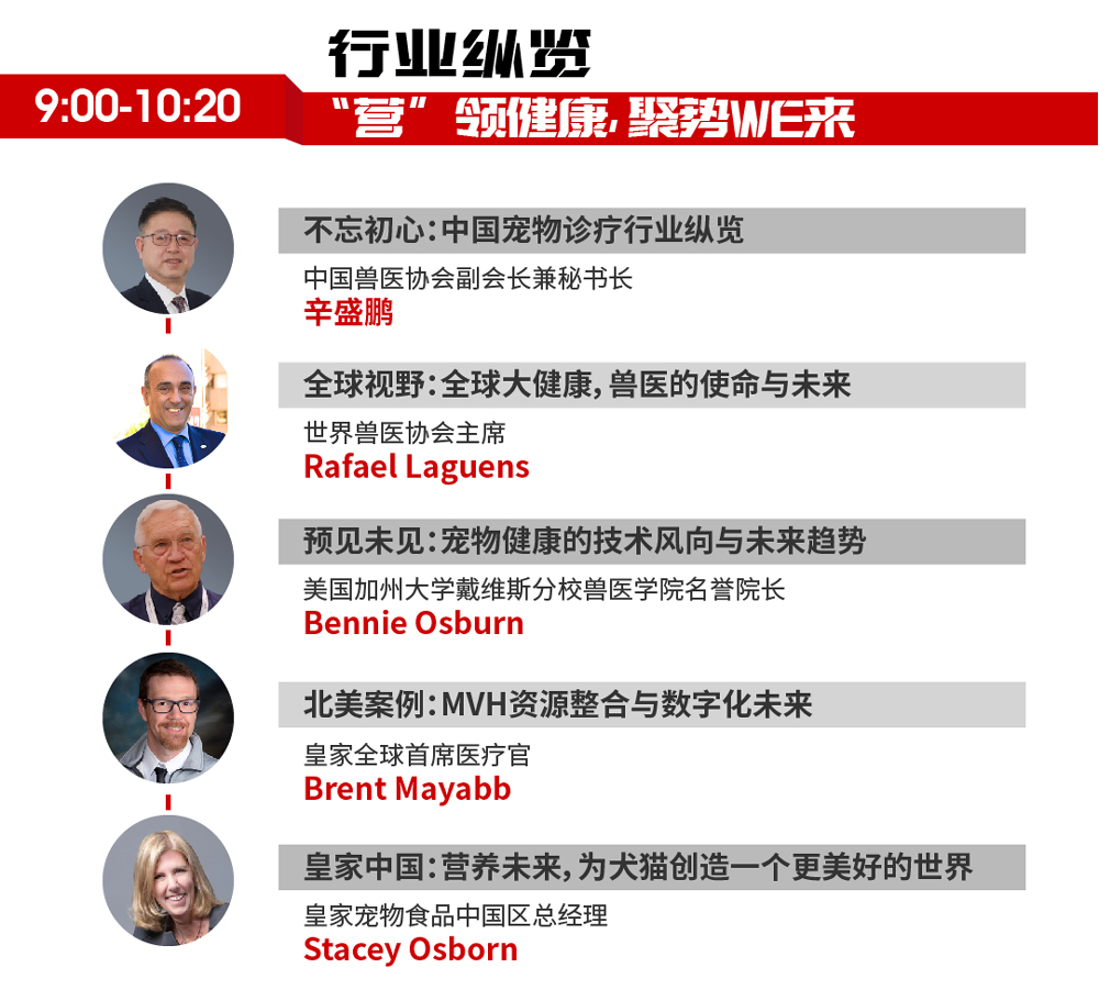 回首过往五年,伴随宠物市场超高速发展,宠物诊疗行业正在进入更加细分和精准的黄金发展期。如何通过整合、吸收优秀医疗资源,构建专科化、数字化等成熟管理模式,以帮助更多宠物医院快速响应宠主需求,成为抓住市场新风口亟待解决的课题。作为宠物健康领域领先的全球性公司,皇家连续五年打造兽医师行业盛典,本届峰会将以更高规格邀请海内外权威行业专家和合作伙伴,围绕“人才启航”、“临床营养”、“行业数字化”三大核心议题,从全球宠物诊疗行业发展、国际兽医发展大数据、宠物临床营养新趋势等角度,深度剖析行业痛点,分享前沿洞察。