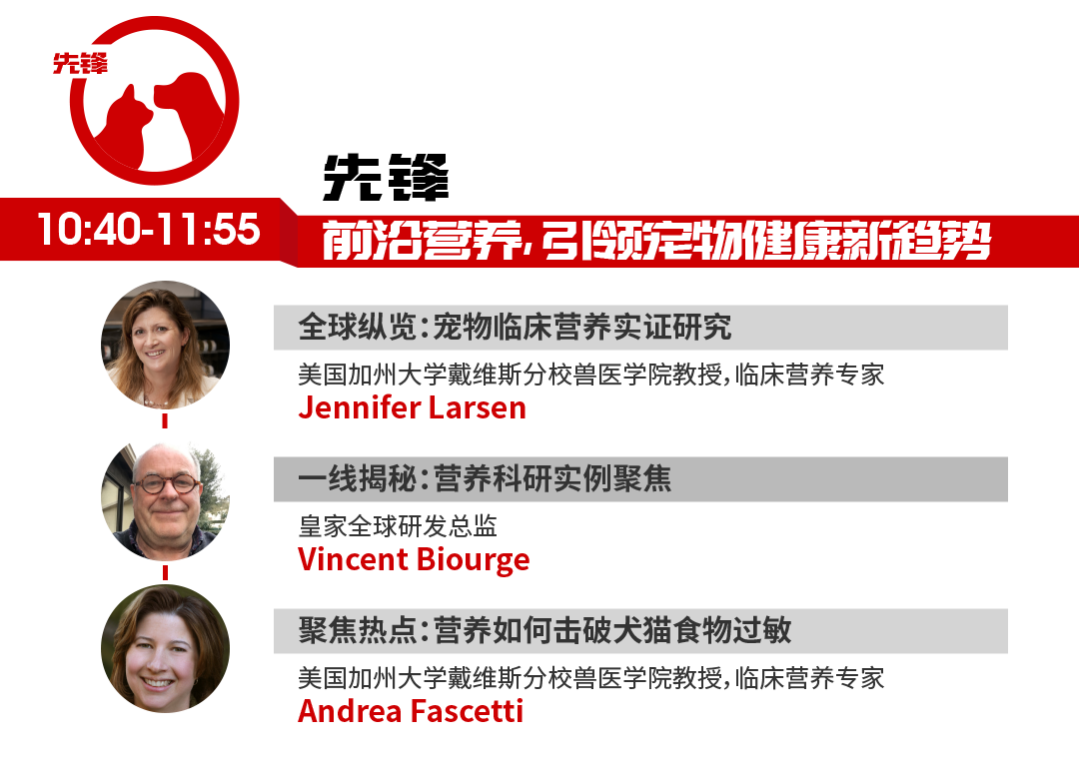 营养是猫犬健康的基石,科学和精准的养宠观念有助于维持爱宠的长期健康,这也是皇家与宠物领域专业人士的共同目标和追求。本次峰会将邀请美国加利福尼亚大学戴维斯分校的兽医学院教授、犬猫临床营养服务部门负责人Dr. Jennifer Larsen,分享当前宠物临床营养的最新实证研究,并在犬猫临床营养专家Dr. Andrea Fascetti的带领下了解如何通过营养击破犬猫食物的过敏难题。此外,皇家全球研发总监Dr. Vincent Biourg将聚焦皇家法国总部营养科研的最佳实例——超低敏、早期肾脏预测工具,借助前沿创新探索宠物健康新趋势。